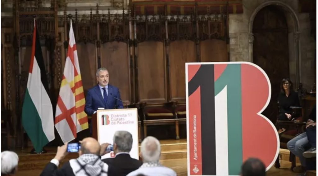 بارسلونا کے میئر جاؤما کولبونی نے اعلان کیا ہے کہ شہر میں فلسطین کے ساتھ تعاون کو فروغ دینے کے لیے “ضلع 11” قائم کر دیا گیا ہے۔ یہ اقدام سابق میئر پاسکوال ماراگال کی 1995 کی اُس پہل کی یاد دلاتا ہے جس کے تحت بوسنیا کی جنگ کے بعد ساراےوو کے ساتھ تعاون کا پروگرام شروع کیا گیا تھا۔