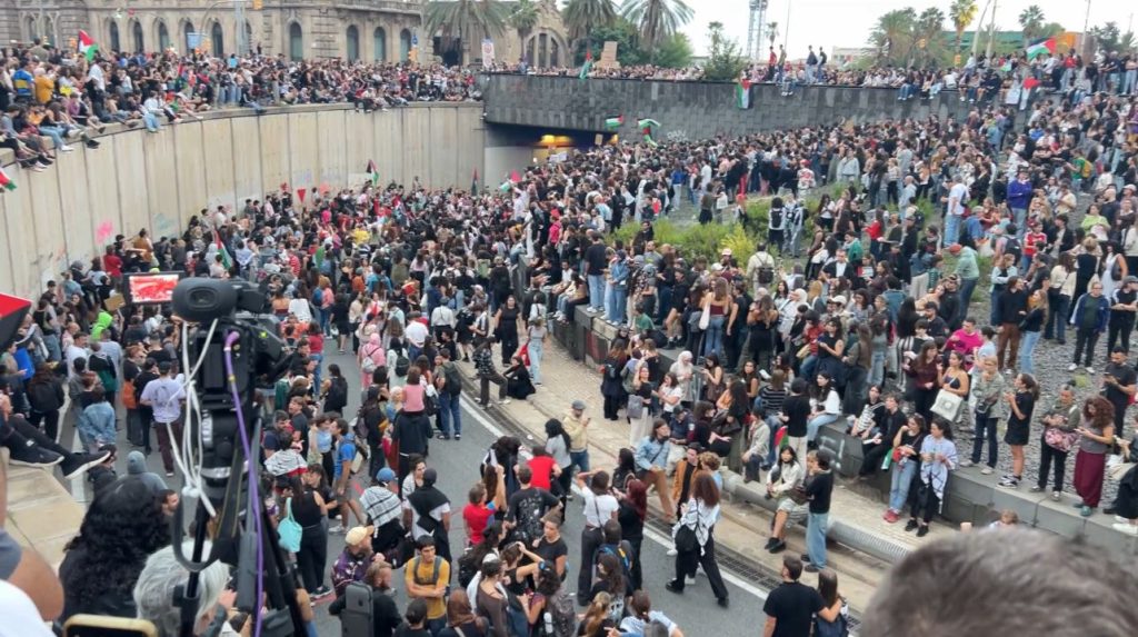 مظاہرین نے اعلان کیا کہ آنے والے دنوں میں بارسلونا میں فلسطین کے حق میں تاریخ کا سب سے بڑا مظاہرہ کیا جائے گا۔