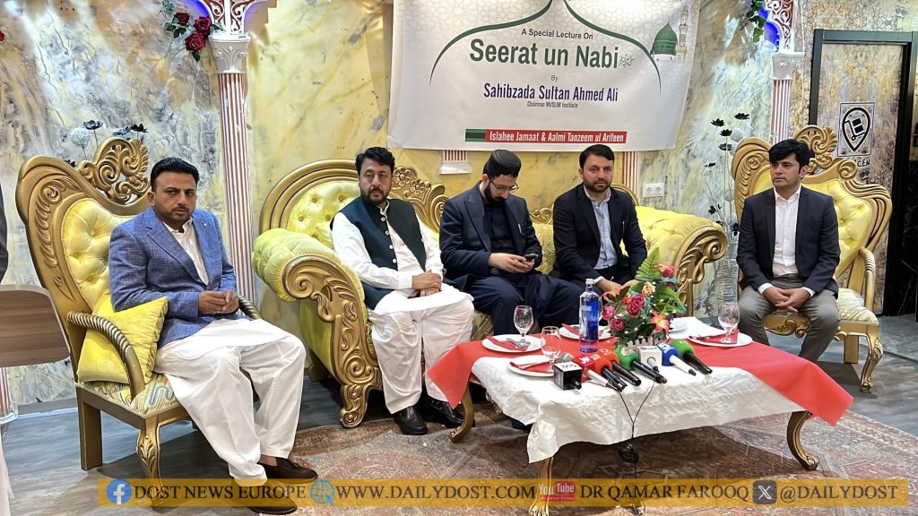 بارسلونا(دوست نیوز)اصلاحی جماعت عالمی تنظیم العارفین بارسلونا کے مرزا عقیل احمدنے سیرت النبی صلی اللہ علیہ والہ وسلم کانفرنس کا انعقاد کیا۔کانفرنس سے صاحبزادہ سلطان احمد علی (سیکریٹری جنرل اصلاحی جماعت و عالمی تنظیم العارفین) خصوصی خطاب کیا