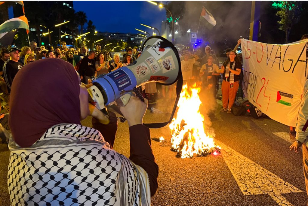 بارسلونا (دوست نیوز)غزہ کے لیے امدادی فلوٹیلا میں شامل کارکنوں نے پیر کی شب اسرائیلی قونصل خانے کے باہر احتجاج کیا۔ یہ مظاہرہ بدھ کو فلسطین کے حق میں ہونے والی عام ہڑتال سے قبل کیا گیا۔