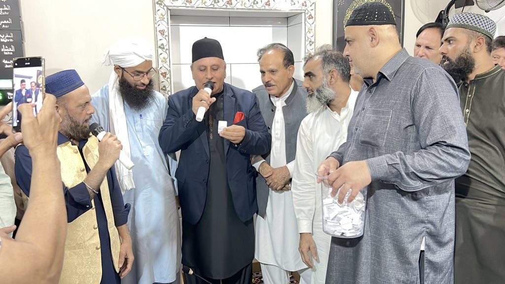 حاجی راجہ اسد حسین کی جانب سے قرعہ اندازی کےذریعے عمرہ کا ٹکٹ،قرعہ صابر حسین کے نام نکلا