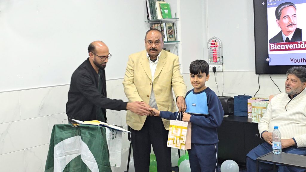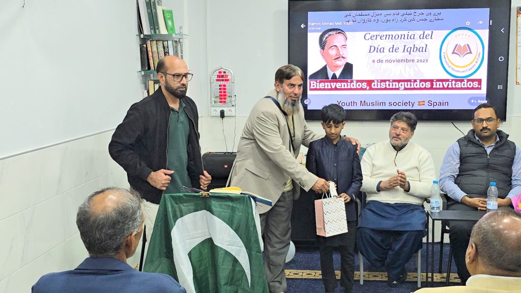 بارسلونا(دوست نیوز)نو مبر یومِ اقبال کی پُروقار تقریب یوتھ مسلم سوسائٹی اسپین کے زیرِ اہتمام ابراہیم اسلامک سنٹر میں ہوئی،جس کا مقصد شاعرِ مشرق، مفکرِ پاکستان علامہ محمد اقبالؒ کے افکار و پیغام کو اسپین میں پروان چڑھنے والی نئی نسل تک پہنچانا تھا۔