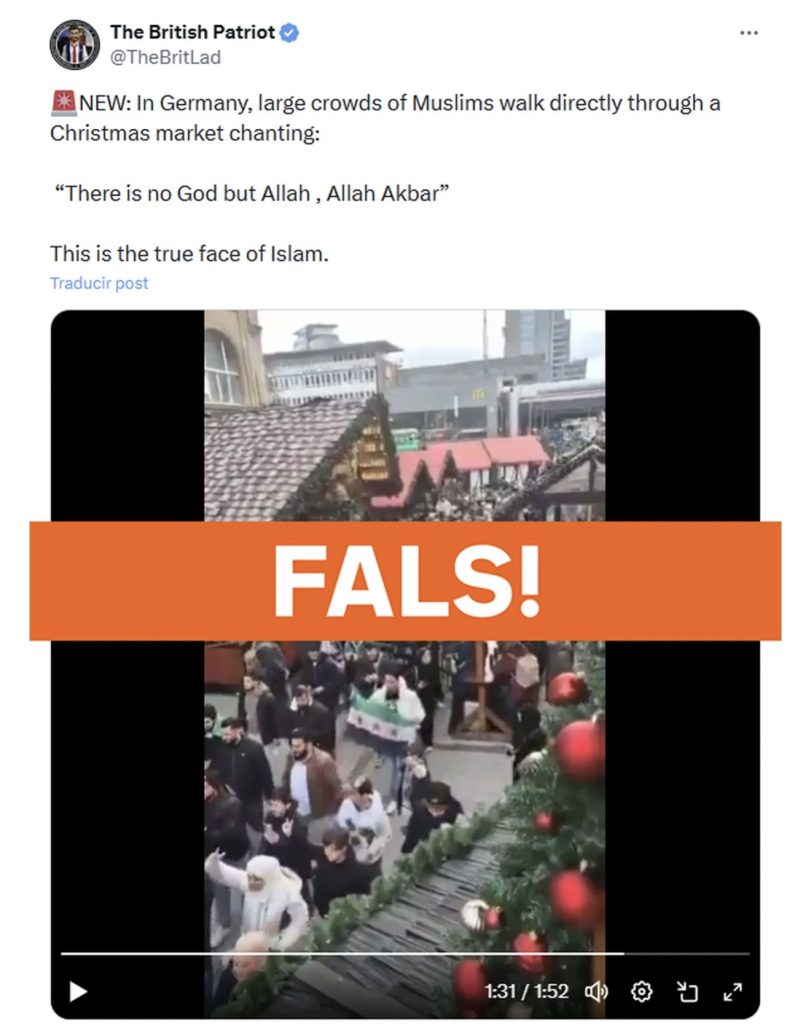 بعض شہروں جیسے اسٹاک ہوم، ایسن، اشٹٹگارٹ اور برلن میں شامی پناہ گزینوں کی جانب سے بشار الاسد کی حکومت کے خاتمے پر کی گئی تقریبات کی پرانی یا غلط ویڈیوز بھی اس بیانیے کو تقویت دینے کے لیے استعمال کی جا رہی ہیں، حالانکہ تحقیقات سے ثابت ہوا ہے کہ ان کا کرسمس بازاروں سے کوئی تعلق نہیں تھا۔