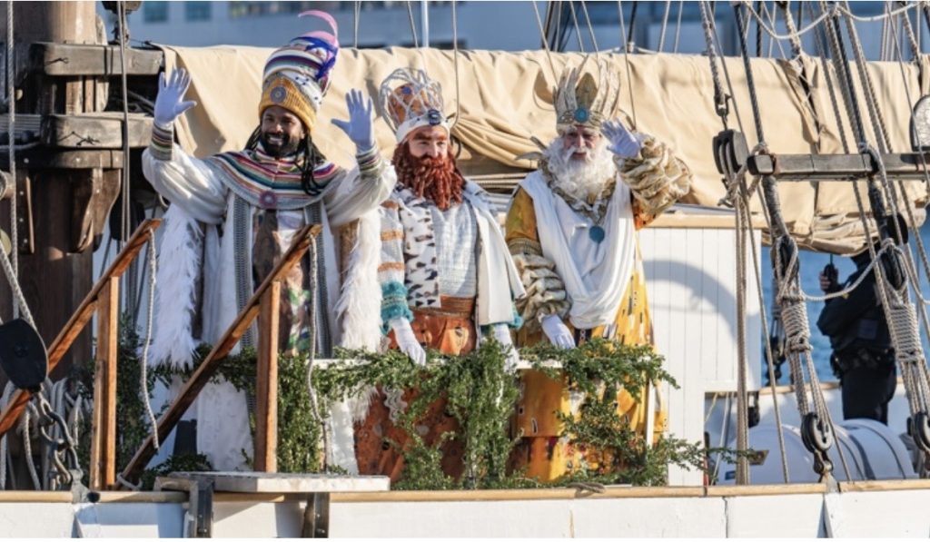 تقریبات کا اختتام 5 جنوری کو تھری وائز مین یعنی ’اَلس رَئیس ماگز‘ کی آمد سے ہوتا ہے۔ بارسلونا میں یہ جلوس شام 4:30 بجے بندرگاہ سے شروع ہو کر شہر کی مختلف سڑکوں سے گزرتا ہوا پلاسا دِ اسپانیا پر اختتام پذیر ہوتا ہے، جہاں بچوں پر مٹھائیاں نچھاور کی جاتی ہیں۔