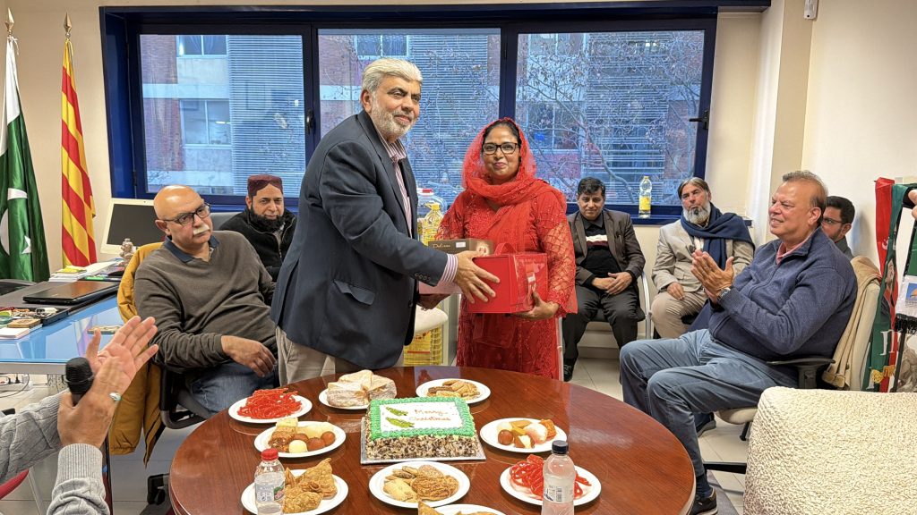 بارسلونا(دوست نیوز)پاکستان فورم اسپین کے پلیٹ فارم سے صدر پاکستان فورم اسپین سید ذوالقرنین شاہ نے ڈالڈا یورپ کے دفتر میں کرسمس کی خوشی میں ممتاز منیر سہوترہ ،محترمہ جوزفین کرسٹینااور راجو الیگزینڈر کے ہمراہ کرسمس کیک کاٹا اور کرسمس کی مبارک باد دی