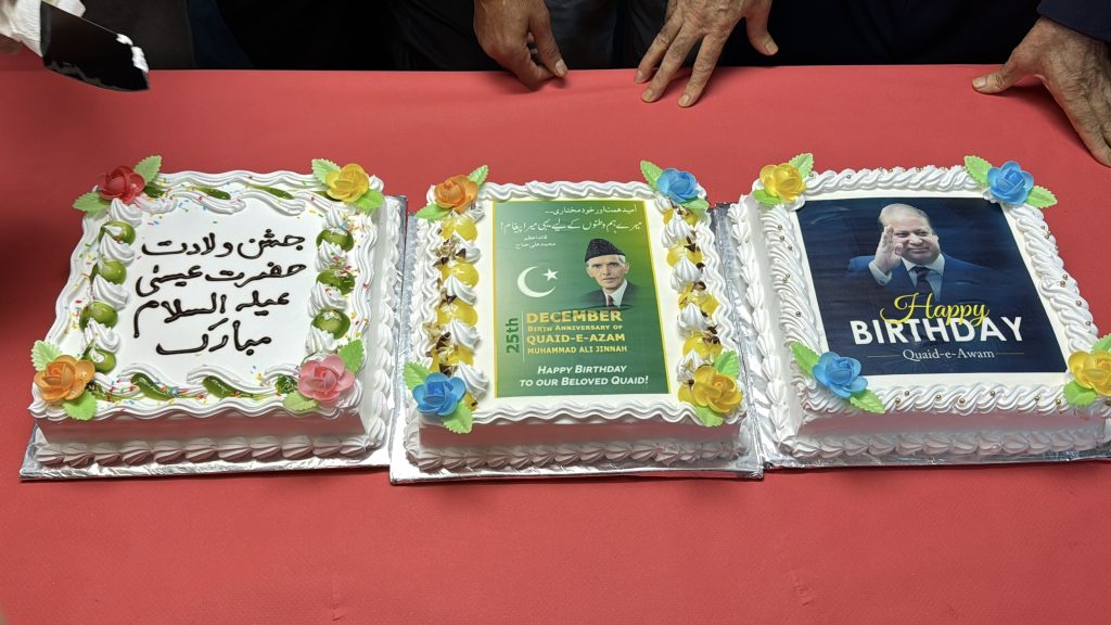 آخر میں مسلم لیگ نون اسپین کی جانب سے کرسمس ،قائد اعظم محمد علی جناح اور میاں محمد نواز شریف کی سالگرہ کے کیک کاٹے گئے