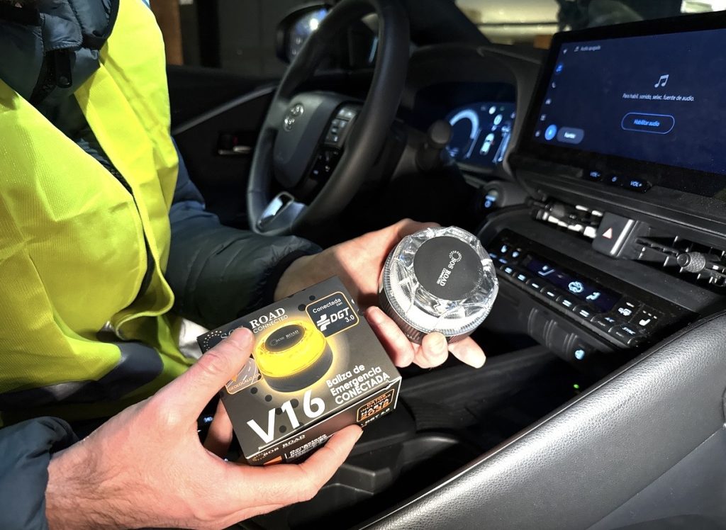 نئے کنیکٹڈ V16 ماڈلز خودکار طور پر گاڑی کا مقام اسپین کے سرکاری ٹریفک پلیٹ فارم DGT 3.0 کو بھیجتے ہیں، جس سے دیگر ڈرائیورز کو نیویگیشن ایپس، سیٹلائٹ نیویگیشن اور الیکٹرانک سائن بورڈز کے ذریعے آگاہ کیا جا سکتا ہے۔