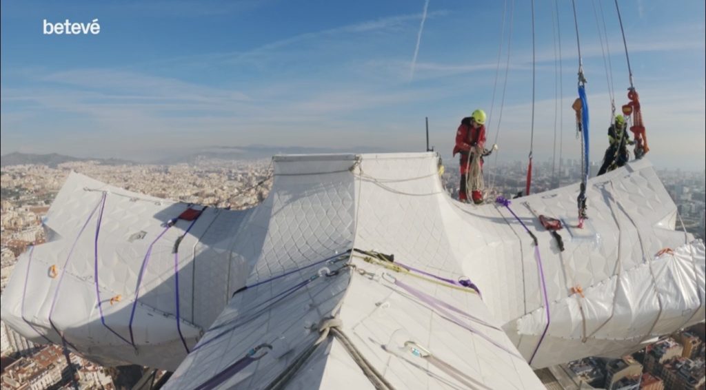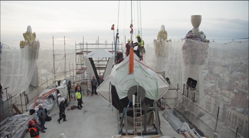 ساگرادا فامیلیاکے برجِ یسوع مسیح کی چوٹی پر صلیب کا آخری افقی بازو نصب کر دیا گیا