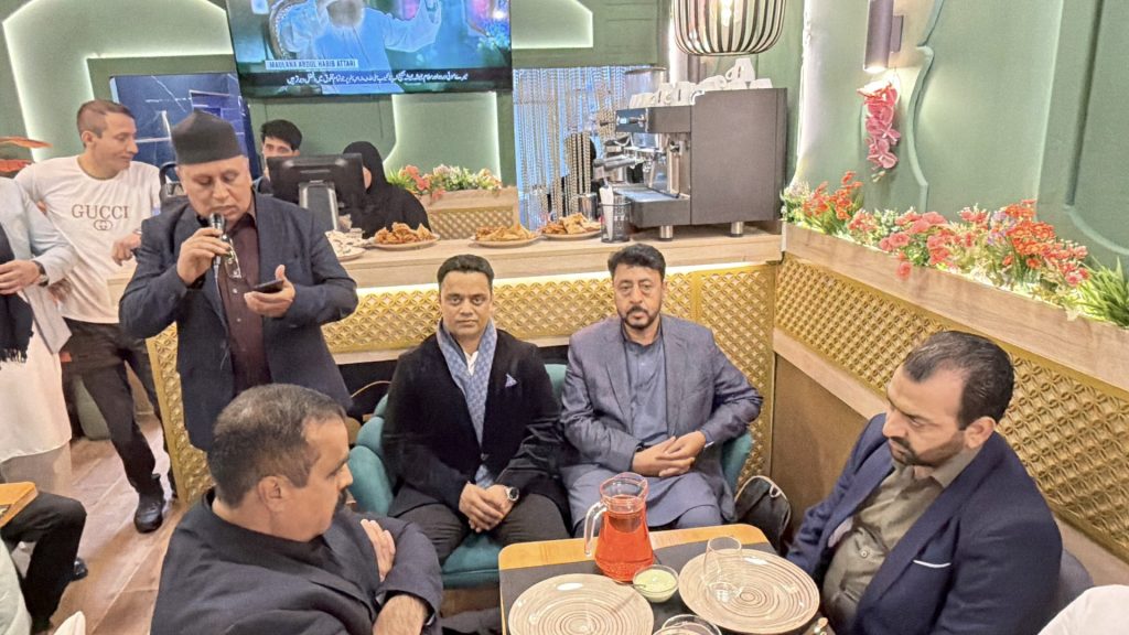 قدیراے خان نے تلاوت قرآن مجید اور دعا سے روزہ افطار کرایا اس موقع پر قونصل جنرل مراد علی وزیر نے مختصر خطاب کیا اور مون شہزاد بھٹی کو ریسٹورنٹ کی مبارک باد دی اور کامیابی کی دعا کی