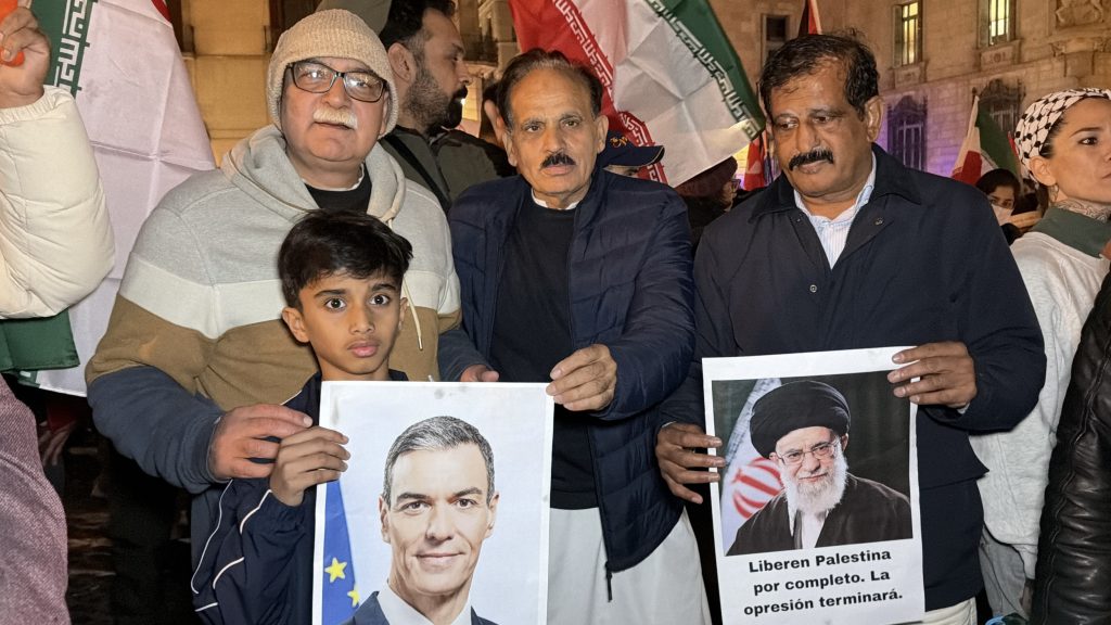 مظاہرین ایرانی جھنڈے اٹھائے ہوئے تھے اور ان کے بینرز پر “NATO باہر جاؤ” یا “نیٹو نہیں” جیسے نعرے درج تھے۔ وہاں Ali Khamenei کی تصاویر بھی نظر آئیں، جو حملوں کے پہلے دن ہلاک ہو گئے تھے۔ اسی طرح Pedro Sánchez کی تصاویر بھی موجود تھیں، جنہوں نے مشرقِ وسطیٰ میں امریکہ اور اسرائیل کی مشترکہ فوجی کارروائی کی سخت مخالفت کی ہے۔