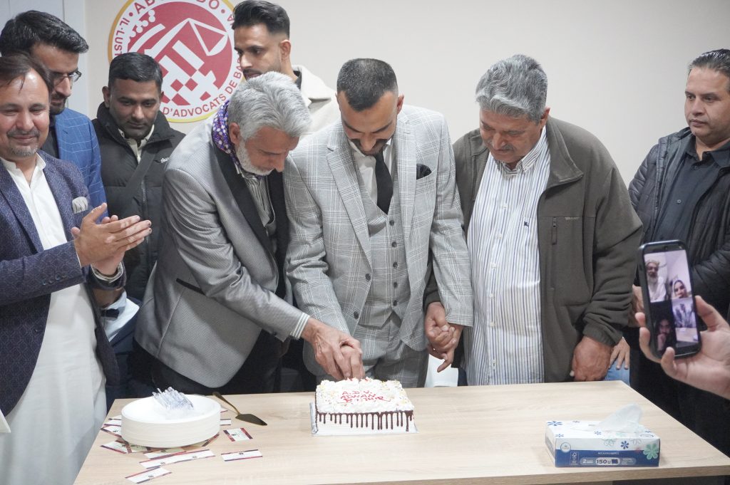 نئے دفتر کے افتتاح کی خوشی میں عزیز واقارب اور دوست احباب کے ہمراہ کیک کاٹا گیا۔تقریب میں شریک مہمانوں کو مٹھائی اور مشروبات سے تواضح کی گئی۔