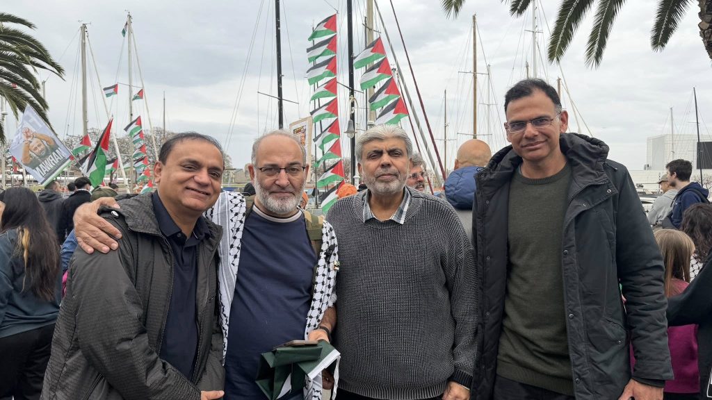 سابق سینیٹر مشتاق احمدخان دیگر دوستوں کے ہمراہ جن میں ڈاکٹر یاسر،پیرس سے چوہدری مقصود سرور شامل ہیں بارسلونا پورٹ پر پہنچے یہاں ست صمود فلوٹیلا کی رونگی کی تیاریاں آخری مراحل میں داخل ہو چکی تھیں ،لیکن موسم کی خرابی کی وجہ سے روانگی عارضی طور پر روک دی گئی ہے لیکن وہاں موجود تمام کشتیاں علامتی طور پر وہاں سے روانہ ہو گئی ہیں