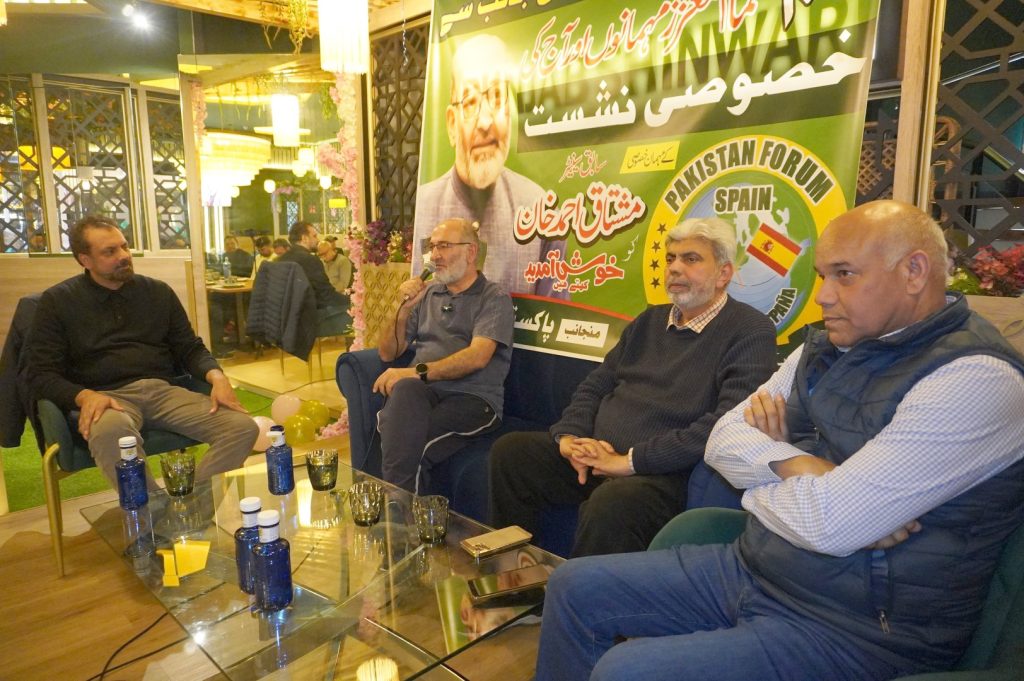 بارسلونا(دوست نیوز)پاکستان فورم اسپین کے زیر اہتمام پاکستان سے گلوبل صمود فلوٹیلا کی لانچنگ تقریب میں بطور مہمان شرکت کرنے والے سابق سینیٹر مشتاق احمد خان سے پنجاب شینواری ریسٹورنٹ پر ایک نشست ہوئی،جس کی صدارت صدر پاکستان فورم اسپین سید ذوالقرنین شاہ نے کی،پاکستانی کمیونٹی کی نمایاں شخصیات نے شرکت کی